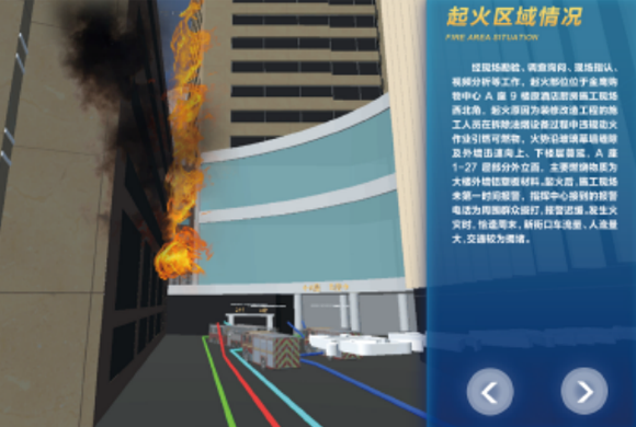 火灾现场模拟复原分析系统,通过3D模型和动画模拟对火灾事故现场三维场景重建,还原火灾发生的原因、起火环境、燃烧和烟气扩散路径、消防现场调度和灭火战略重现。可以旋转、移动和缩放三维重建现场,同时还可在平面图和立体图之间任意切换。对于室外的火灾现场重建通过火灾现场模拟复原分析系统火灾事故调査人员可以更加直观清晰的了解火灾现场的环境,结合现场的细节物证以及三维重建现场和火灾的模拟动画可以更加准确的分析火灾的成因。并且快速认定火灾原因,核定火灾损失,査明火灾事故责任