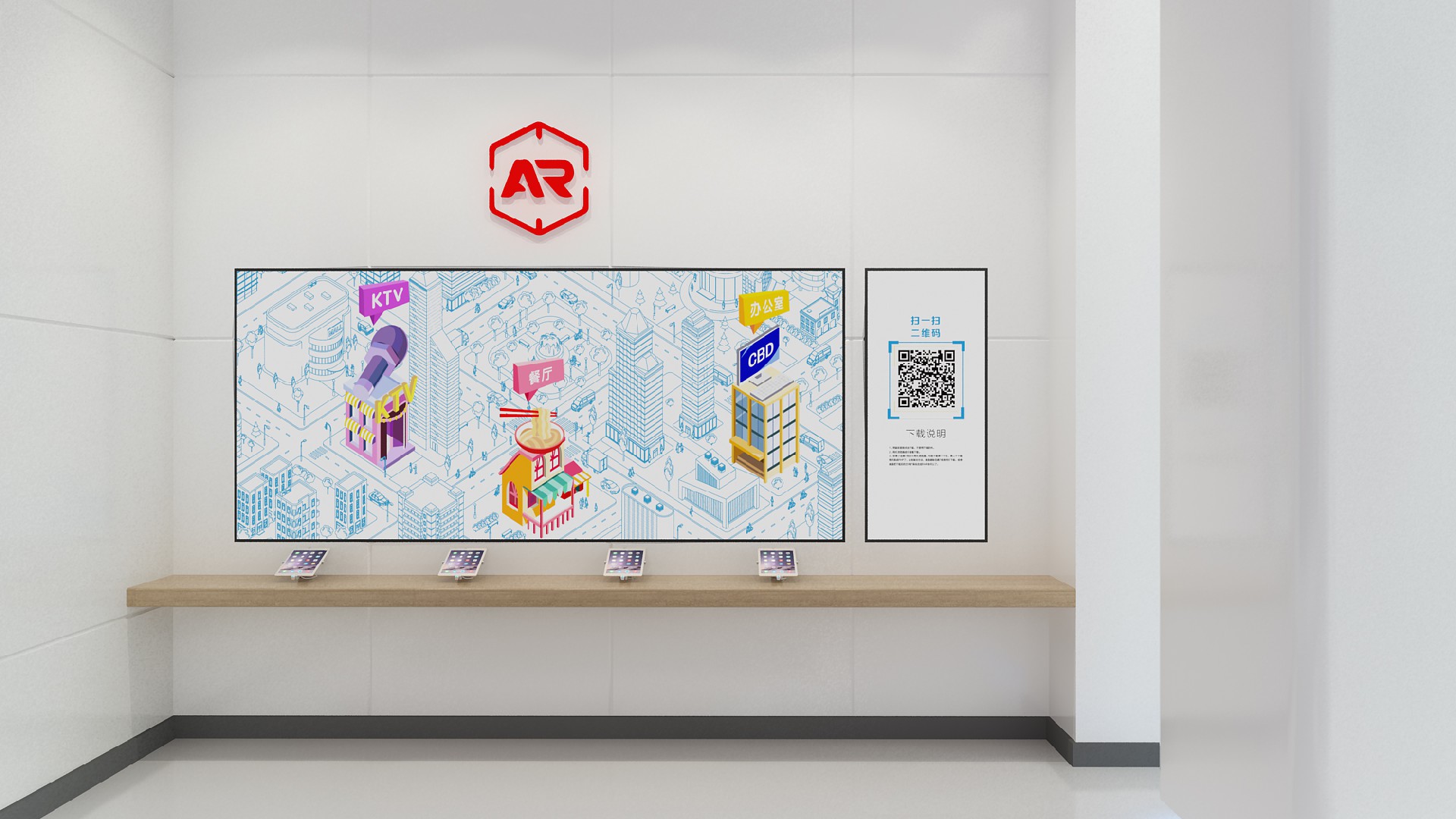 展示方式:显示屏、平板电脑、AR识别卡