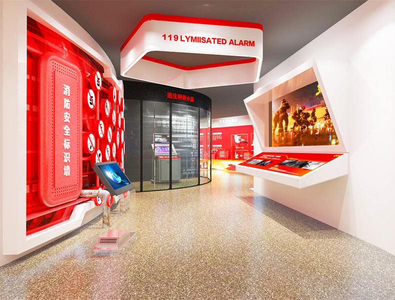 火场呼救小屋是一款软硬件结合的产品,在有限空间内营造体验者被困于火场中的氛围,体验者须通过操作软件大声呼喊来求救:体验者需按下呼救键,对着话筒以清晰洪亮的声音呼救,通过分贝仪测出求救者呼救的音量是否达标。除此之外,还设置了其他打求救信号方式的知识内容展示,如手电筒、投掷软物件、吹响口哨、舞动鲜艳衣物、敲击铁锅等等,让体验者学习被困火场等待救援的过程中,可呼救或灵活运用常见物品发出信号,引起救援人员的注意。本产品互动性强,内容生动,让体验者进行沉浸式的安全教育学习。