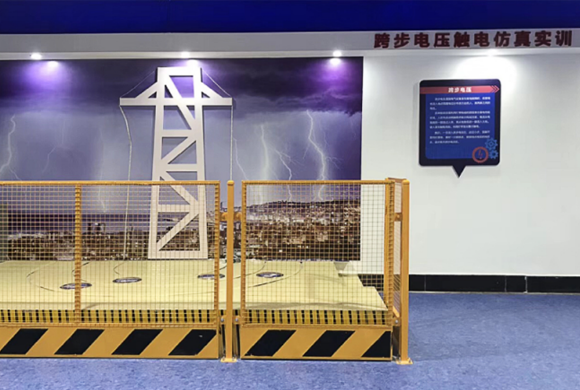 跨步电压实验台通过实验装置真实再现户外跨步电压场景,结合带以灯光形式表现触电现象验,观众可走上实验台,模拟跨步电压的产生原理,让观众在切身场景体验中认知这一科学现象,以求在生活中能够远离触电危害,更好的保护自己和家人。