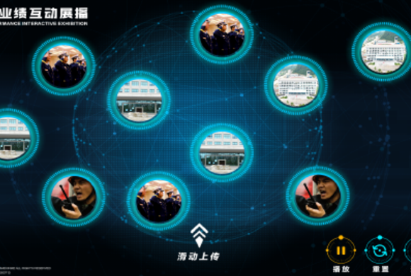 当地消防力量部署,运用科技飞屏技术,将多点触控技术与无线投屏技术结合,实现多媒体大屏演播点评以及飞屏互动效果。该系统一改传统消防文化展示方式,使展示形式和用户操作变得更加轻松、方便、灵活。体验者操作一台触摸屏,在上面进行点选、缩放、拖动等一系列动作,选中自己想看的历史文化内容,向上将内容甩向大屏投影,即可使本机上的图片、内容等移至大屏投影上,并显示出详细讲解、视频等内容,实现了资源共享和多屏练联动的演示效果。