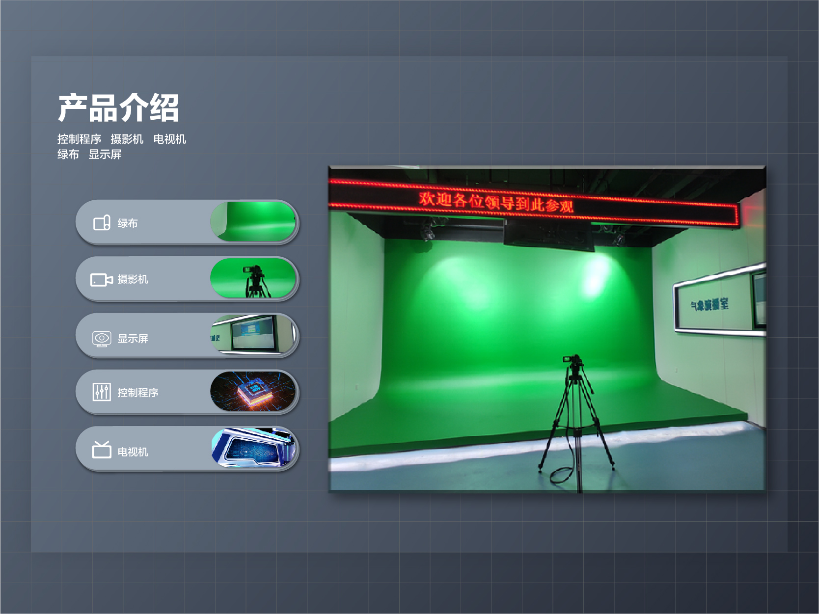 虚拟气象演播室是将虚拟三维场景与电视摄像机现场拍摄的人物活动图像进行数字化的实时合成,使人物与虚拟背景能够同步变化,从而实现两者的融合,获得优质的合成画面,进行同步录制。可根据不同主题更换不同的虚拟北京,结合各种三维动画元素,画面效果生动活泼。