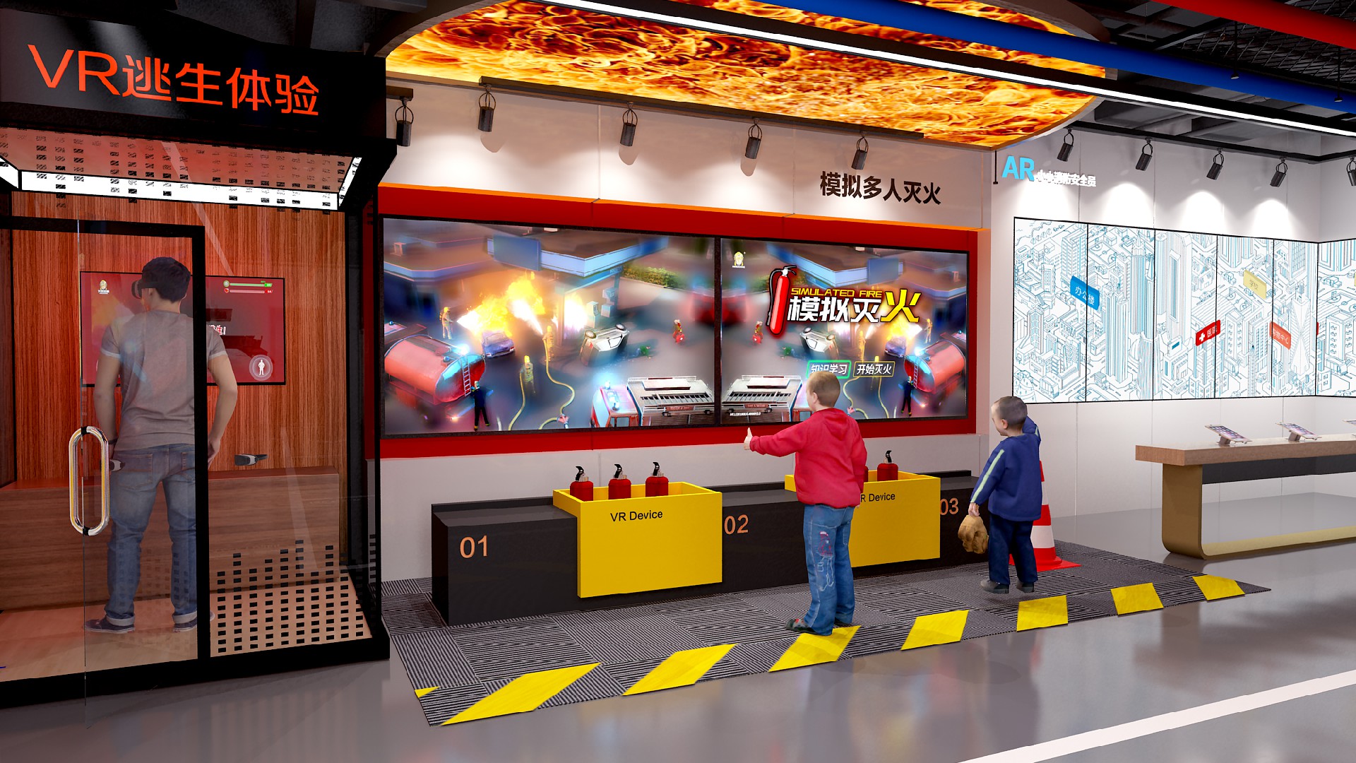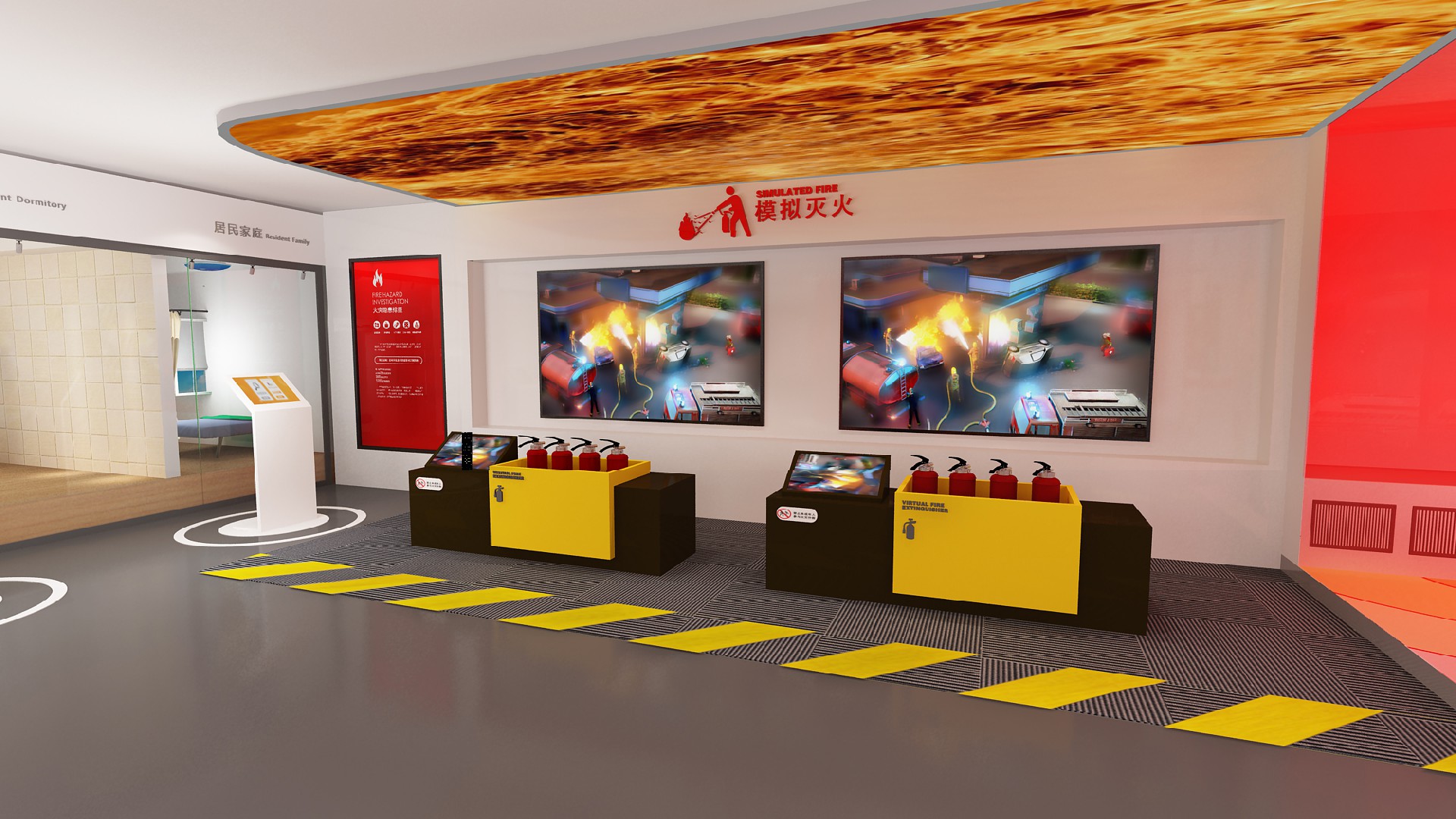 模拟灭火双屏互动,又称为多人大屏模拟灭火体验系统,可实现双屏飞屏互动、高仿真灭火实操培训功能。通过操作屏可选择知识学习、科普视频和着火场景 ,通过滑动操作把选择的视频、图片和场景飞屏到大屏上,有更好的互动感受和视觉效果。在实操环节,可选择6种常见的着火场景,根据着火原因选择合适的灭火器,系统判定灭火器适配后,用实物灭火器对大屏上的着火场景进行灭火。通过系统的学习和实训,可学习灭火知识,提升灭火自救技能。