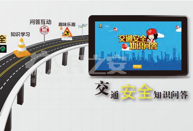 交通知识问答系统中包含全面的交通安全知识,可通过后台管理程序进行实时更新,设备自主进行问答、评分,通过人机交互自动式问答模式,加深体验者对交通安全知识的记忆。